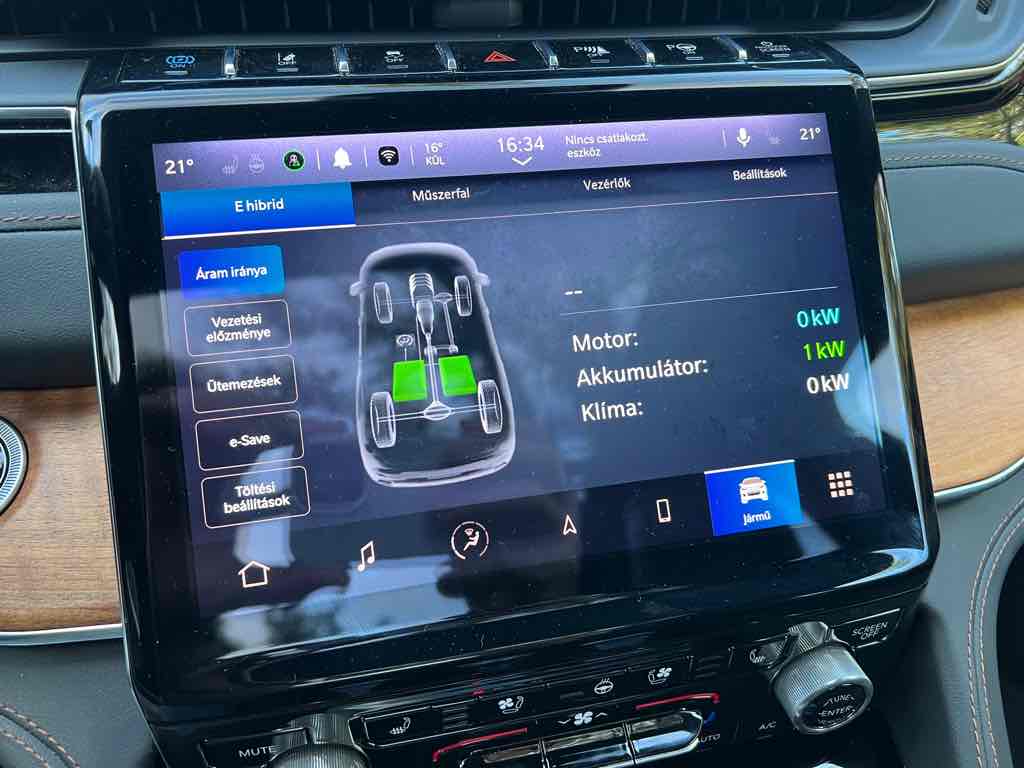 Despite its size and robust build, the Jeep Grand Cherokee remains impressively efficient for a four-cylinder, 2.6-ton SUV. As a plug-in hybrid, it is particularly frugal in urban and short-haul scenarios, with around 47.5 kWh/100 km in electric mode and a pure electric range of approximately 48 km per charge. WLTP combined carbon emissions are 0 g/km in full EV mode, easily meeting stringent European environmental norms. Charging from a 7.4 kW wall box takes about 2.5 hours; a standard wall plug was used during testing.