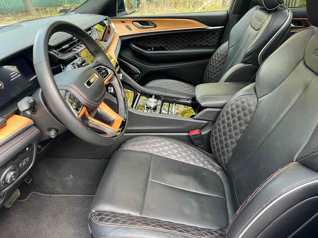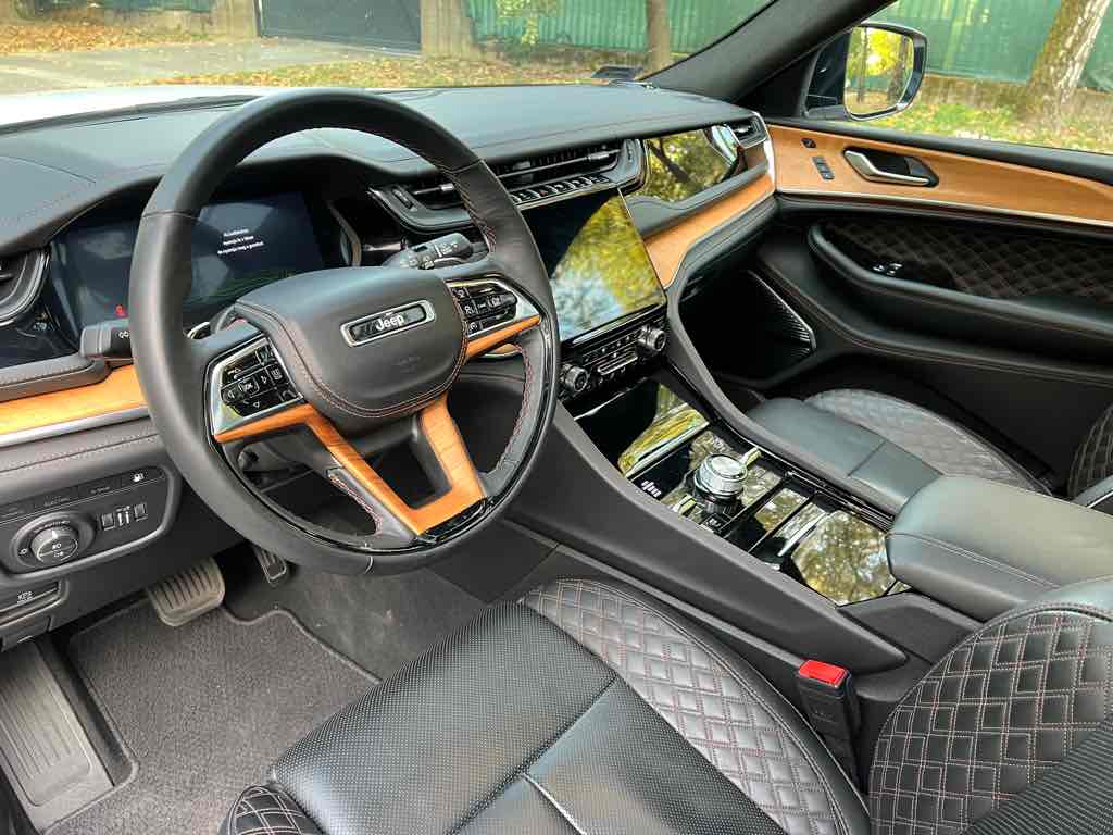 The latest Grand Cherokee generation finally matches and even surpasses the standards of the premium segment inside. Plush, high-quality leather, real wood trim, exclusive Summit Reserve upholstery, front seats with massage function, and a powerful harman/kardon audio system await passengers. The harmonious design of doors, dashboard, and seats ensures that all key functions are within easy reach, though some touch controls can be tricky in bright sunlight.